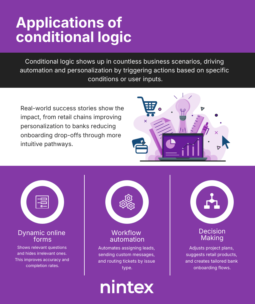 - Real-world examples: Forms that reveal new questions, workflows that change based on user input, or systems that route tasks automatically.